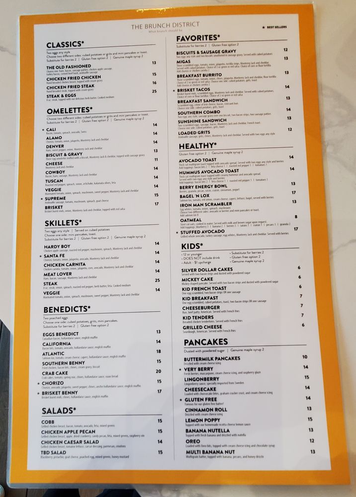 Welcome to The Brunch District, a vibrant breakfast and brunch destination located in Addison, TX. With a menu that celebrates delicious morning fare, you'll find everything from decadent French Toast options like the Whiskey Banana and Cinnamon Roll to hearty Benedicts, including the mouthwatering Crab Cake variety.